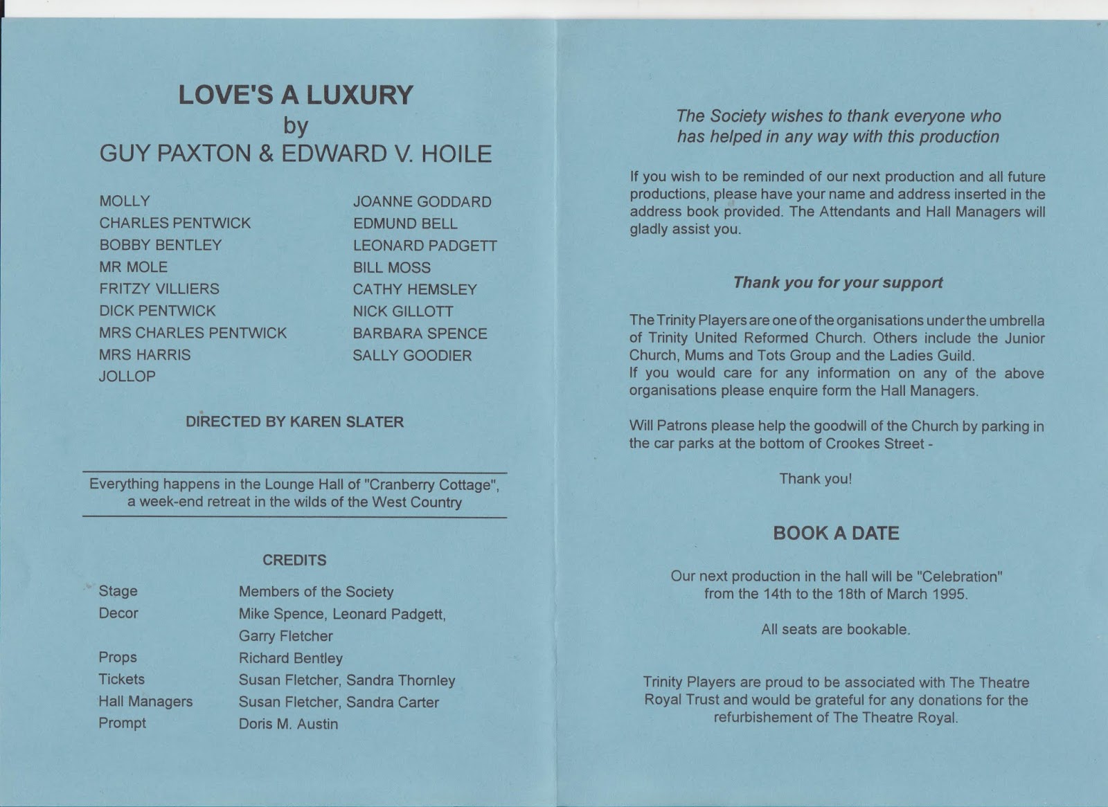 Various archive material showing some history of Trinity Players and under its previous identities. Copyright Philip Johnson